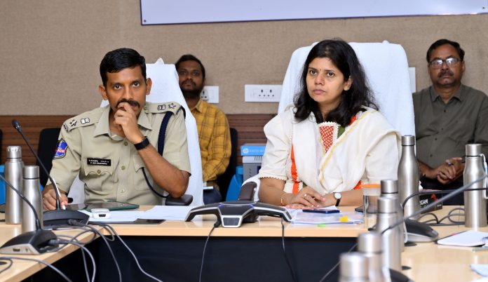 నిజామాబాద్, ఫిబ్రవరి 24 : జిల్లాలో ఇంటర్మీడియట్, పదవ తరగతి వార్షిక పరీక్షలను సమర్థవంతంగా నిర్వహించేందుకు పకడ్బందీ ఏర్పాట్లు చేశామని కలెక్టర్ ఇలా త్రిపాఠి తెలిపారు. పరీక్షల నిర్వహణ ఏర్పాట్లపై మంగళవారం హైదరాబాద్ నుండి రాష్ట్ర ప్రభుత్వ ప్రధాన కార్యదర్శి రామకృష్ణారావు సంబంధిత అన్ని జిల్లాల కలెక్టర్లతో, పోలీస్ కమిషనర్లు, ఎస్పీలతో వీడియో కాన్ఫరెన్స్ ద్వారా సమీక్షించారు. నిజామాబాద్ కలెక్టరేట్ నుండి జిల్లా పాలనాధికారి ఇలా త్రిపాఠి, పోలీస్ కమిషనర్ సాయి చైతన్య, సంబంధిత శాఖల అధికారులు పాల్గొన్నారు. ఇంటర్మీడియట్, పదవ తరగతి పబ్లిక్ పరీక్షలను ప్రశాంత వాతావరణంలో, ఎలాంటి అవాంఛనీయ సంఘటనలు చోటుచేసుకోకుండా నిర్వహించేందుకు సంబంధిత శాఖల అధికారులు సమన్వయంతో పని చేయాలని సీ.ఎస్ రామకృష్ణారావు సూచించారు. ప్రశ్నపత్రాల రవాణా నుండి పరీక్షా కేంద్రాలకు అవి చేరేవరకు కట్టుదిట్టమైన పోలీసు బందోబస్తు ఏర్పాటు చేయాలని ఆదేశించారు. పరీక్షా కేంద్రాల్లో ఫర్నీచర్ కొరత లేకుండా, విద్యార్థులకు తగిన కనీస మౌలిక సదుపాయాలు అందుబాటులో ఉండేలా చూడాలన్నారు.