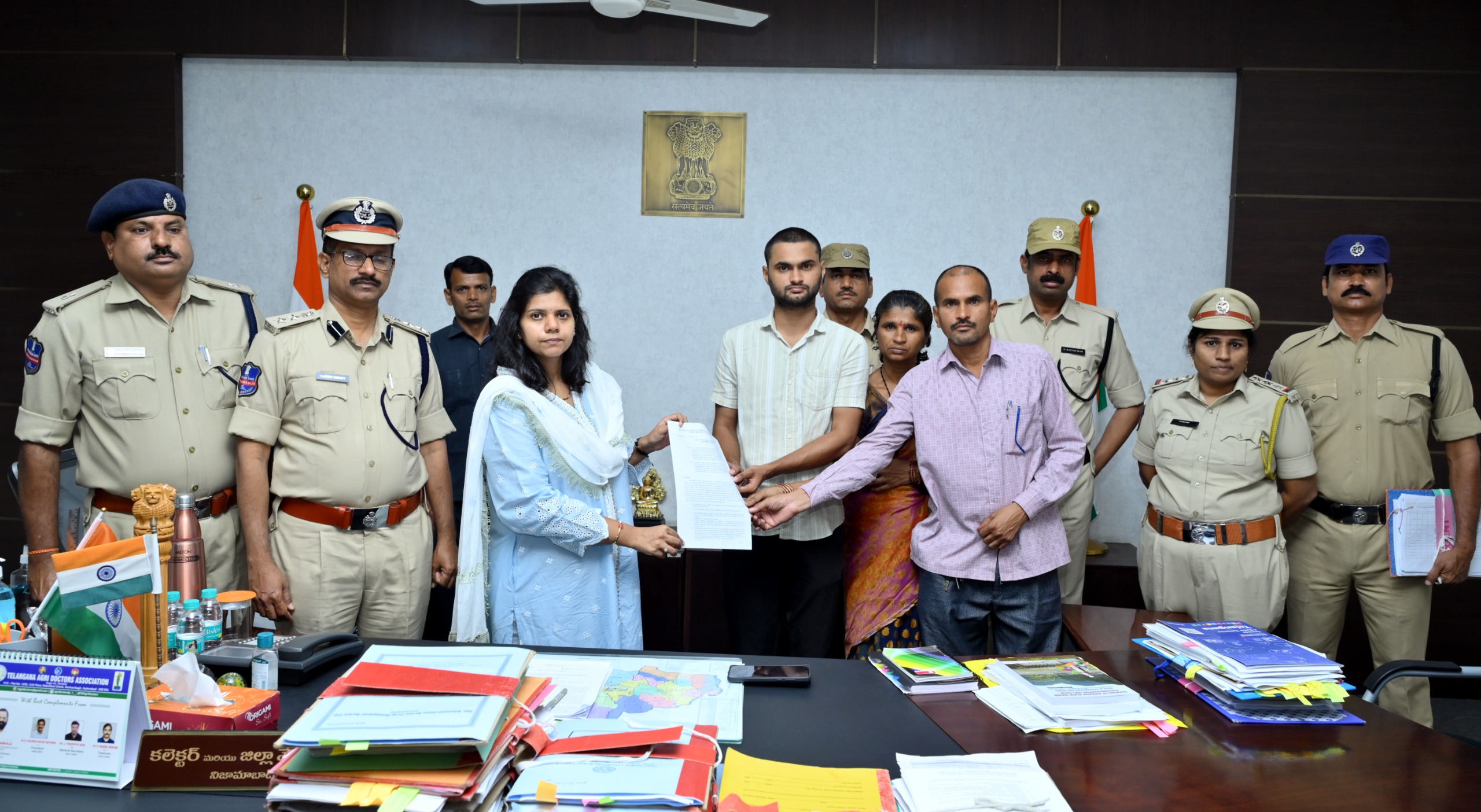 నిజామాబాద్, ఫిబ్రవరి 23 : ఎక్సైజ్ కానిస్టేబుల్ కుమారి గాజుల సౌమ్య సోదరుడు గాజుల శ్రవణ్ కు ప్రభుత్వం ఉద్యోగ అవకాశం కల్పించగా, ఈ మేరకు కలెక్టర్ ఇలా త్రిపాఠి సోమవారం తన చాంబర్ లో ఉద్యోగ నియామక పత్రం అందజేశారు. విధి నిర్వహణలో భాగంగా ఎక్సైజ్ కానిస్టేబుల్ సౌమ్య గత నెల 23వ తేదీన తనిఖీలు నిర్వహిస్తున్న క్రమంలో గంజాయి స్మగ్లర్లు కారుతో ఢీ కొట్టడంతో తీవ్రంగా గాయపడి తొమ్మిది రోజులు మృత్యువుతో పోరాడి జనవరి 31న చికిత్స పొందుతూ మృతి చెందిన విషయం విదితమే.సౌమ్య అంత్యక్రియలను ప్రభుత్వం అధికార లాంచనాలతో జరిపించడమే కాకుండా, ఇటీవలే నిజామాబాద్ పర్యటనకు హాజరైన సందర్భంగా ముఖ్యమంత్రి రేవంత్ రెడ్డి తన చేతుల మీదుగా సౌమ్య కుటుంబ సభ్యులకు కోటి రూపాయల ఎక్స్ గ్రేషియాను అందించారు. బాధిత కుటుంబంలో ఒకరికి ప్రభుత్వ ఉద్యోగం కల్పిస్తామని ప్రకటించారు. ఈ మేరకు సౌమ్య సోదరుడు గాజుల శ్రవణ్ కు ఎక్సైజ్ శాఖ లో జూనియర్ అసిస్టెంట్ గా ప్రభుత్వం ఉద్యోగం కల్పించగా, కలెక్టర్ ఇలా త్రిపాఠి నియామక పత్రం అదించారు. ఈ సందర్భంగా కలెక్టర్ మాట్లాడుతూ, ప్రభుత్వం ఇచ్చిన మాట ప్రకారం సంఘటన జరిగిన నెల రోజుల లోపే సౌమ్య కుటుంబానికి కోటి రూపాయల ఎక్స్ గ్రేషియా, సౌమ్య సోదరుడు శ్రవణ్ కు ప్రభుత్వ ఉద్యోగం కల్పించిందని అన్నారు. బాధిత కుటుంబానికి ఇకముందు కూడా ప్రభుత్వ యంత్రాంగం తోడ్పాటుగా నిలుస్తుందని కలెక్టర్ భరోసా కల్పించారు. సౌమ్య మరణానికి కారకులైన వారిని కఠినముగా శిక్ష పడేలా చూస్తామని అన్నారు. ఈ కార్యక్రమం లోఎక్సైజ్ డిప్యూటీ కమిషనర్ సోమిరెడ్డి, ఎక్సైజ్ సూపరింటెండెంట్ మల్లారెడ్డి, సీ.ఐ స్వప్న, ఎస్.ఐ మల్లేష్ తదితరులు పాల్గొన్నారు.