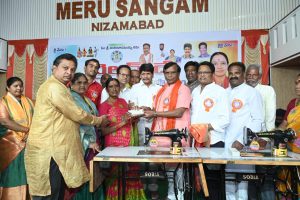 ఇందూరు అర్బన్..సనాతన హిందూ సంస్కృతి సంప్రదాయాలకు మేరు కులస్తులు అత్యంత ప్రాధాన్యత ఇస్తుంటారని వారు కుట్టే కుట్టు మిషన్లకు పూజ చేయనిదే బట్టలు కూడా కుట్టరని ఎమ్మెల్యే  పేర్కొన్నారు. అది వారికి ఉన్న హిందూ సంస్కృతి యొక్క గొప్పదనం గౌరవం అని ఆయన పేర్కొన్నారు. అలాగే ఐక్యతకు మారుపేరు మేరు కులస్తులు అని ఎమ్మెల్యే  అన్నారు. వారంతా ఐక్యమత్యంతో ఉండి ప్రభుత్వంతో వారికి రావాల్సిన ఫలాలను పోరాడి మరి దక్కించుకుంటారని పేర్కొన్నారు. టైలర్స్ డేకు తనకు ఎనలేని సంబంధం ఉందని, ప్రతి టైలర్స్ డే రోజున మేరు కులస్తులు నిర్వహించే కార్యక్రమంలో పాల్గొని వారికి ప్రోత్సాహం అందిస్తానని చెప్పారు. ఈ సందర్భంగా టైలర్స్ బట్టలు కుడితేనే మాలాంటి రాజకీయ నాయకులు ఖద్దరు బట్టలు ధరిస్తారని ఆయన అన్నారు. ప్రతివారు కూడా రెడీమేడ్ దుస్తులకు దూరంగా ఉండి దర్జీలు కష్టపడి కుట్టే బట్టలను ధరించాలన్నారు. ఈ సందర్భంగా మేరు కులస్తులలో అత్యంత పేదవారు గా ఉన్న టైలర్స్ కు ఎమ్మెల్యే  తమ ట్రస్ట్ ద్వారా పది కుట్టు మిషన్లు ఉచితంగా అందజేశారు. దీంతో మేరు కులస్తులు సంతోషం వ్యక్తం చేశారు. అనంతరం ఎమ్మెల్యే ని వారు ఘనంగా సన్మానించారు.ఈ కార్యక్రమం లో మేరు కుల సంఘం అధ్యక్షులు హన్మంతరావు మరియు కార్యవర్గం సభ్యులు. బీజేపీ కార్పొరేటర్లు నాగోల్ల లక్ష్మి నారాయణ, చింతకాయల రాజేందర్,బెల్లల్ శశాంక్ , బీజేపీ నాయకులు పండు బంటు ప్రవీణ్, మురళి, పవన్ ముండా, శివ, పంచారెడ్డి సురేష్, ప్రభాకర్ తదితరులు పాల్గొన్నారు.