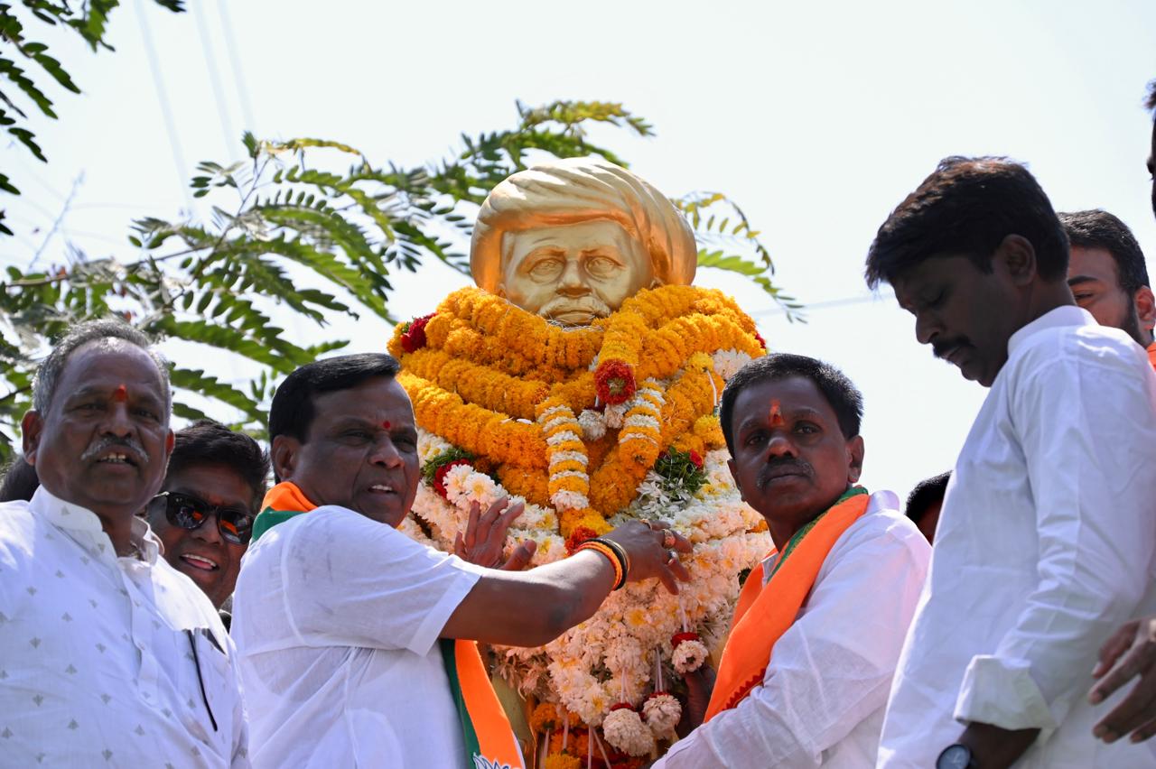 ఇందూరు: మహిళా అక్షరాస్యతకు కృషి చేసిన మహోన్నత వ్యక్తి జ్యోతిబా పూలే అని అర్బన్ ఎమ్మెల్యే ధన్ పాల్ సూర్యనారాయణ గుప్తా అన్నారు. జ్యోతి బా పూలే జయంతి ని పురస్కరించుకొని శనివారం జిల్లా కేంద్రంలోని వినాయక్ నగర్ లో గల విగ్రహానికి పూలమాల వేసి నివాళులర్పించారు. ఈ సందర్భంగా ఎమ్మెల్యే మాట్లాడుతూ… మహిళల కోసం సతీమణి సావిత్రి భాయి పూలే తో కలిసి మొట్టమొదటి పాఠశాలను నెలకొల్పిన మహోన్నత వ్యక్తి అని కొనియాడారు. సమాజంలో సమానత్వం, విద్య, న్యాయం కోసం జీవితాన్ని అంకితం చేసిన మహాయోధుడు అని తెలిపారు. ప్రధానంగా మహిళల విద్యకు ఆయన చేసిన సేవలు అపూర్వమైనవని పేర్కొన్నారు. అణగారిన వర్గాలకు న్యాయం చేయాలని లక్ష్యంతో సత్యశోధ కు సమాజాన్ని స్థాపించారని గుర్తు చేశారు. ఒక మహానుభావుడిని గుర్తు చేసుకోవడం మాత్రమే కాదని, ఆయన చూపిన మార్గాన్ని అనుసరించడం అందరి బాధ్యత అన్నారు.  ప్రధాని మోదీ కూడా మహిళలకు చట్ట సభల్లో 33 శాతం రిజర్వేషన్ కల్పించారని గుర్తు చేశారు. రాష్ట్ర ప్రభుత్వం బీసీ లకు 42 శాతం రిజర్వేషన్ కల్పిస్తామని చెప్పి ప్రజలను మభ్యపెడుతుందన్నారు. ఇప్పటివరకు ఎలాంటి ప్రణాళిక రూపొందించకుండా మోసం చేస్తుందన్నారు. కార్యక్రమంలో జిల్లా కలెక్టర్ ఇలా త్రిపాఠి, బీజేపీ ఓబీసీ మోర్చ రాష్ట్ర అధికార ప్రతినిధి స్వామి యాదవ్, కార్పొరేటర్లు జ్యోతి మురళి, మల్లేష్ యాదవ్, బెల్లాల్ శశాంక్, జగదీష్ కులకర్ణి, బంటు ప్రీతి ప్రవీణ్, శ్రావణ్ కుమార్ తదితరులు పాల్గొన్నారు.
