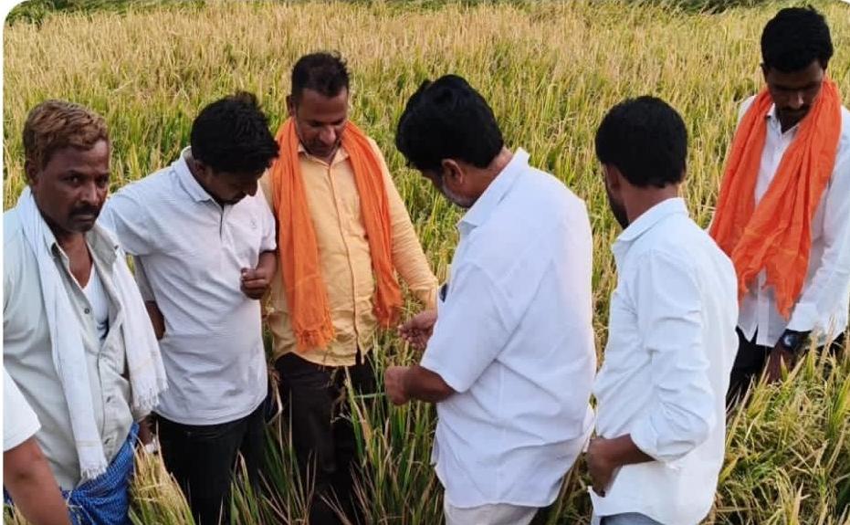 తడిసిన ధాన్యాన్ని పరిశీలించిన ధర్పల్లి మండల బిజెపి అధ్యక్షులు జీరా మహిపాల్, కార్యకర్తలు ఈ