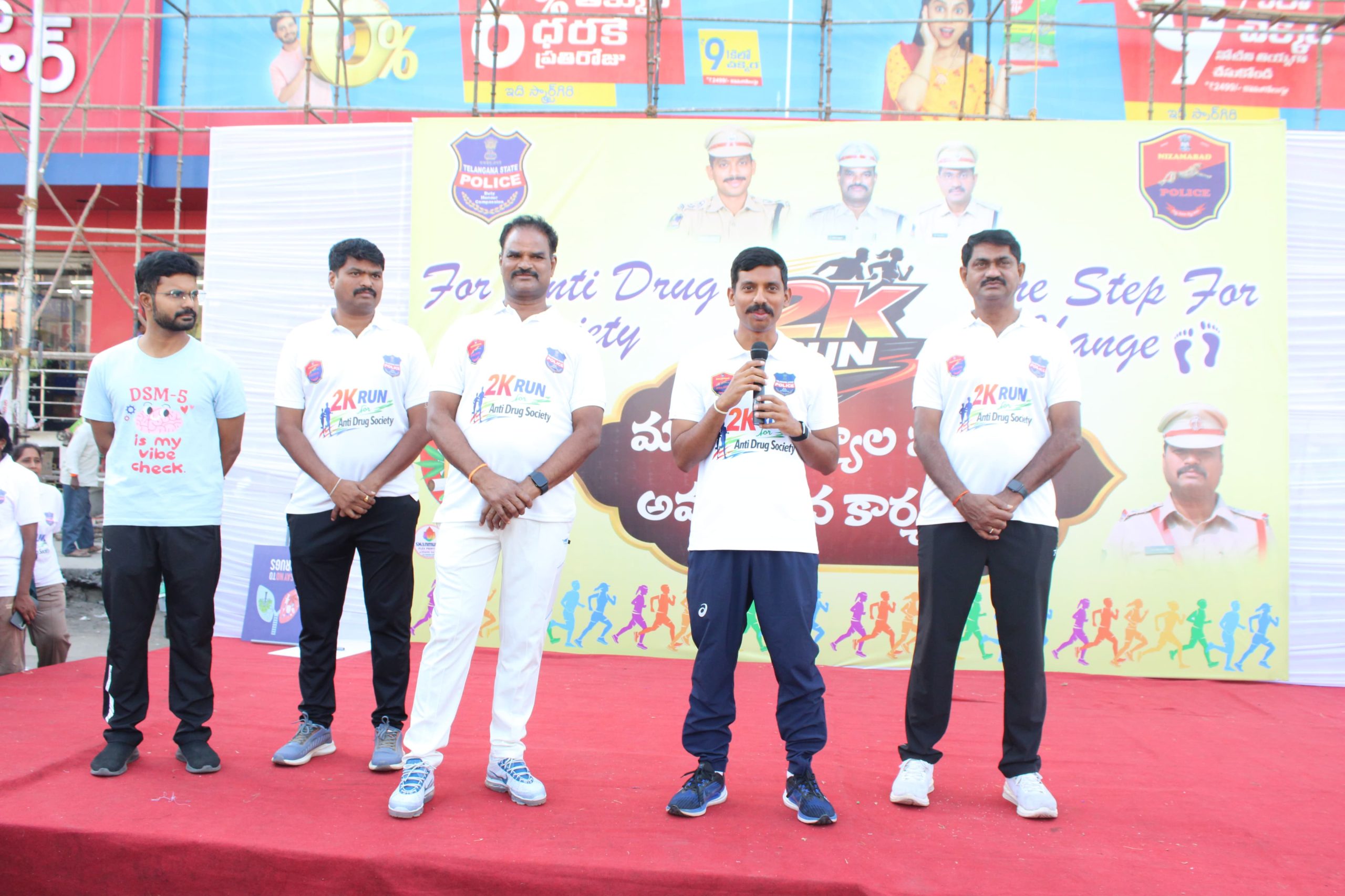 ఈ సందర్భంగా నిజామాబాద్ పోలీస్ కమిషనర్ మాట్లాడుతూ “యువతే దేశానికి భవిష్యత్తు. మీలో ఉన్న శక్తి , సామర్థ్యాన్ని సరైన దారిలో వినియోగిస్తే మీరు మాత్రమే కాదు, సమాజం మొత్తం అభివృద్ధి చెందుతుంది. ఆరోగ్యకరమైన జీవనశైలి కోసం క్రీడలు, వ్యాయామం చాలా అవసరం. అలాంటి మంచి అలవాట్లను పెంపొందించుకోవాలి. ఇటీవల కాలంలో యువతలో చెడు అలవాట్లు పెరుగుతున్నాయి. ముఖ్యంగా డ్రగ్స్ వంటి వ్యసనాలకు దూరంగా ఉండటం అత్యంత అవసరం. ఒకసారి ఆ అలవాట్లలో పడితే బయటపడటం చాలా కష్టం. కాబట్టి మీ భవిష్యత్తును దృష్టిలో పెట్టుకుని మంచి మార్గాన్ని ఎంచుకోండి. మరియు మన దేశ భవిష్యత్తు యువత చేతిలో ఉంది కావున యువకులు మరియు విద్యార్థులు మానసిక ఒత్తిడికి లోనై డ్రగ్స్ బారిన పడకూడదని సూచించడం జరిగింది. ఈ సమాజంలో ఎవరైనా డ్రగ్స్ గాని గంజాయి గాని అమ్మిన మరియు సేవించిన చట్ట ప్రకారం చర్యలు తీసుకోబడతాయి. ఎవరికైనా సమాచారం తెలిసినట్లయితే 1908 నెంబర్ లేదా 100 కు కాల్ చేయాలని సూచించడం జరిగింది. డ్రగ్ ఫ్రీ సొసైటీగా తీసుకురావాలని మరియు దీనికి ప్రజల సహకారం యువత సహకారం మీడియా సహకారం ఉండాలని కోరడం జరిగింది. ప్రతీ ఒక్కరితో Say no to drugs, Yes to life అని సూచించడం జరిగింది. తల్లిదండ్రులు, గురువులు చెప్పే మంచి మాటలు వినండి. సమాజానికి ఉపయోగపడే పనులు చేయండి. మీరు సన్మార్గంలో నడిస్తే మీ కుటుంబానికి, సమాజానికి గర్వకారణం అవుతారు.