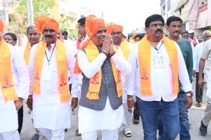 ఇందూరు: వాసవి కన్యకా పరమేశ్వరి అమ్మవారి ఆశీస్సులు అందరిపై ఉండాలని అర్బన్ ఎమ్మెల్యే ధన్ పాల్ సూర్యనారాయణ గుప్తా తెలిపారు. వాసవి కన్యకా పరమేశ్వరి జయంతి పురస్కరించుకొని ఆదివారం కిషన్ గంజ్ లో వేడుకలు నిర్వహించారు. ఈ సందర్భంగా ఎమ్మెల్యే ధన్ పాల్ మాట్లాడుతూ… ఆర్యవైశ్యుల ఆరాధ్య దైవం వాసవి మాత జయంతిని రాష్ట్ర ప్రభుత్వం అధికారికంగా ప్రకటించడం సంతోషకరమన్నారు. అమ్మవారి ఆశీస్సులతో సనాతన ధర్మాన్ని కాపాడేందుకు ఆర్యవైశ్యులు ఎప్పుడు ముందుంటారని పేర్కొన్నారు. అంతకుముందు అమ్మవారికి ఆభరణాలు సమర్పించారు. * వైభవంగా శోభాయాత్ర…